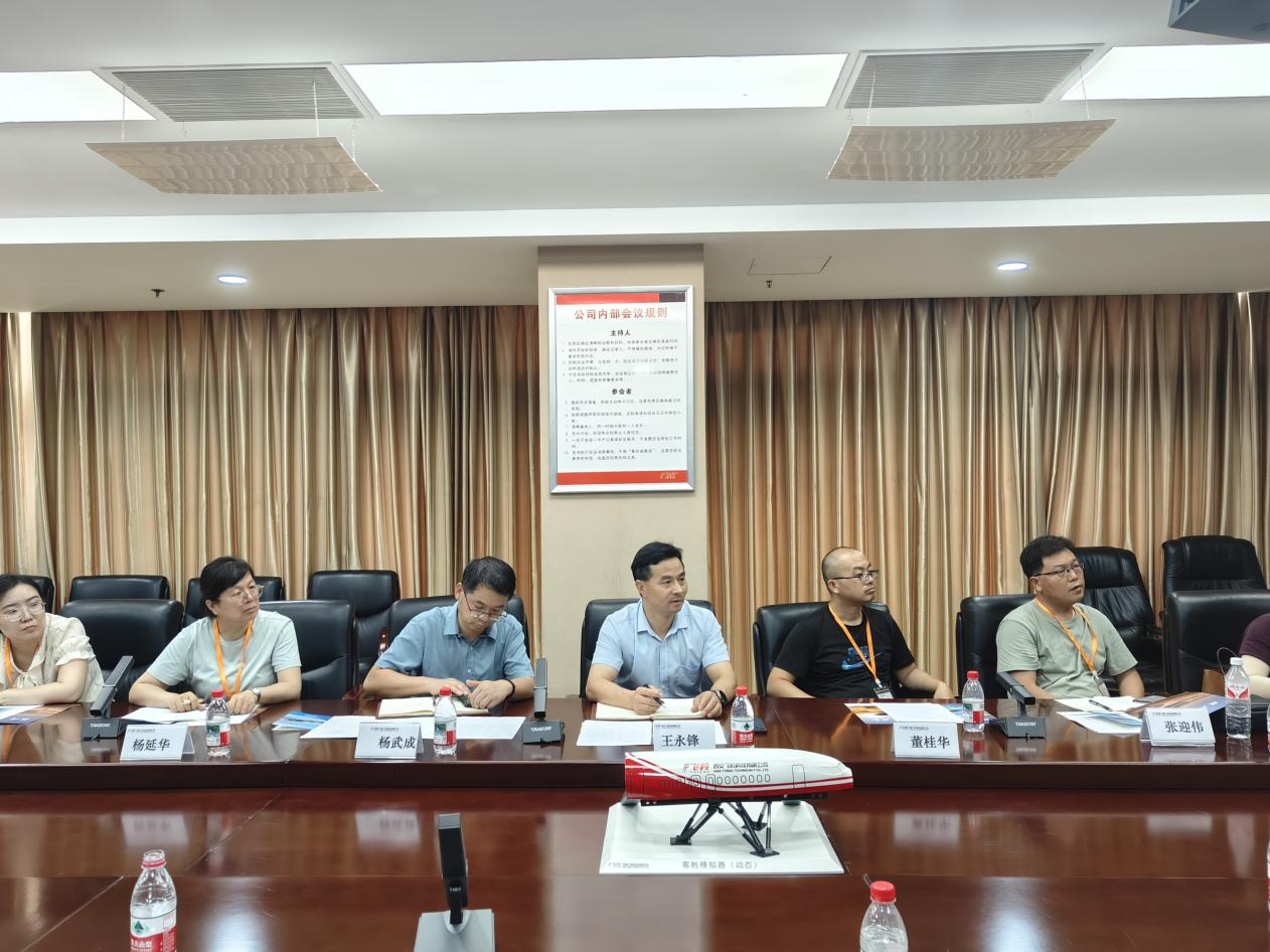 随后,学院一行与企业管理人员和工程技术人员进行了座谈交流。座谈会由飞豹公司经营计划部副部长王巍主持,并邀请一飞院高级工程师陈勇等相关技术人员参与。