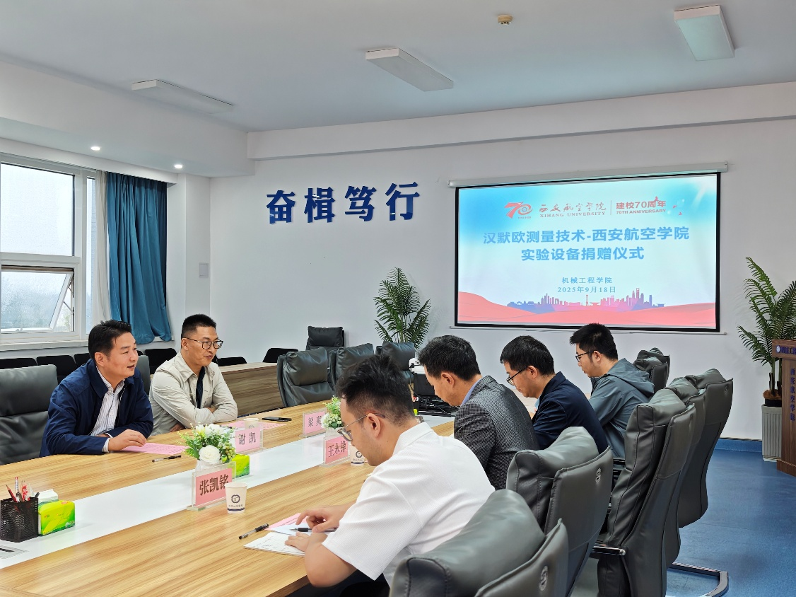 2025年9月18日,汉默欧测量技术有限公司向我校捐赠实验设备,仪式在阎良校区3314会议室隆重举行。汉默欧测量技术有限公司经理谢凯、工程师梁爽,15vip太阳集团院长王永锋、副院长杨武成和教师代表出席了此次活动。捐赠仪式由15vip太阳集团副院长杨武成主持。