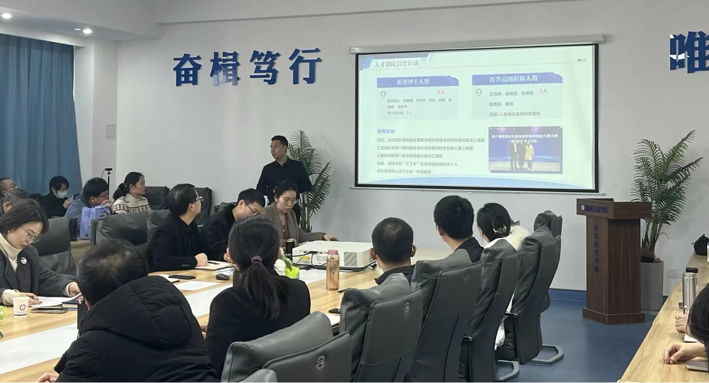 随后,学院各科室主任依次述职,围绕专业建设、教学运行、学生管理、实践教学等方面汇报了年度工作成绩,剖析问题并提出改进措施。