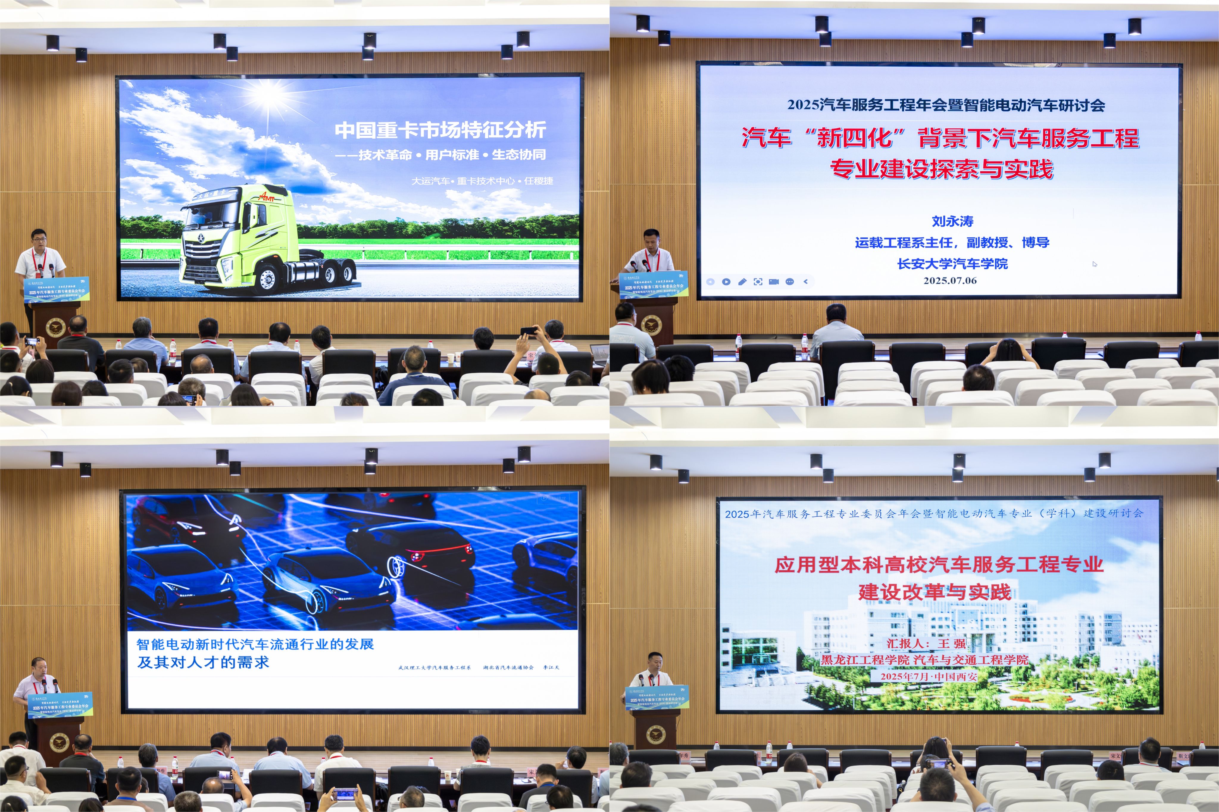 上午的主题报告环节精彩纷呈。中国机械工业教育协会副理事长林松通过对比国内外典型教材案例,展现中外高等教育理念差异,提出新时代教材编写的发展趋势与新要求;15vip太阳集团副校长宋文学教授则结合学校深厚的航空特色优势资源,探讨了智能电动汽车发展与低空经济领域的融合,提出了培养复合应用型人才的新思路,阐释了协同育人的有效路径;武汉理工大学李江天、试飞院李志敏、大运汽车重卡技术部任稷杰以及15vip太阳集团刘超,分别围绕“智能电动新时代汽车流通行业发展与人才需求”“特种车辆应用场景”“中国重卡市场特征分析”“低空飞行器智能航电研发”等内容作了精彩报告,分享了最新研究成果和行业洞见。