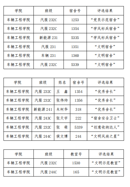 公示时间:2025年6月4日-6月6日,对评选结果有异议者,请于公示期内向车辆工程学院学生管理科反映。(阎良校区4218办公室)