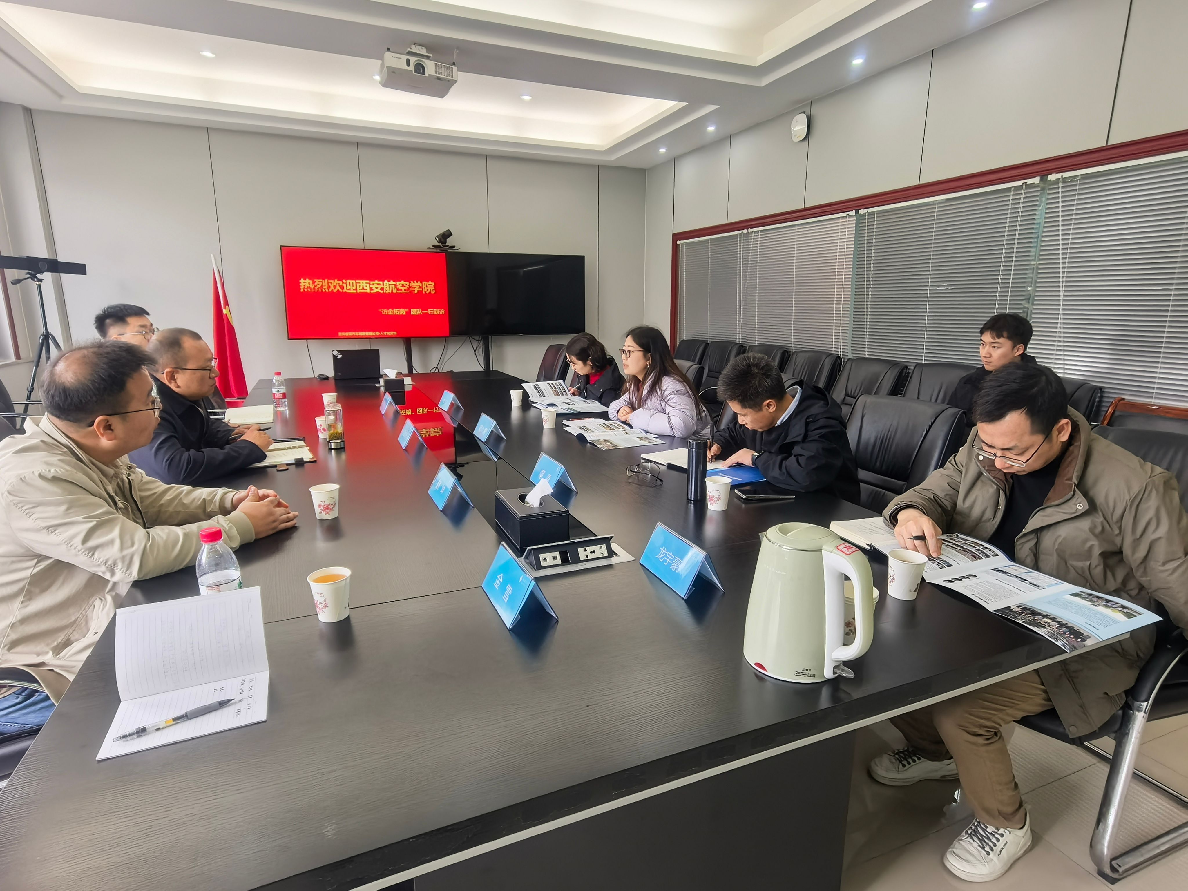 在赴睿蓝汽车的访企拓岗中,双方围绕行业发展、校企合作及学生就业等方面进行了深入交流。赵炜华介绍了学院为符合行业发展及企业需要,对课程设置、人才培养方案等方面在教育教学中做出的改革,介绍了学院在帮助学生提升实际动手能力、使用专业相关软硬件等方面进行的探索和尝试。重庆睿蓝汽车制造有限公司COE经理廖勇、人才经营科科长胡小青均表示,期待与学校建立长期稳定的合作关系,后期会来校开展专场招聘。