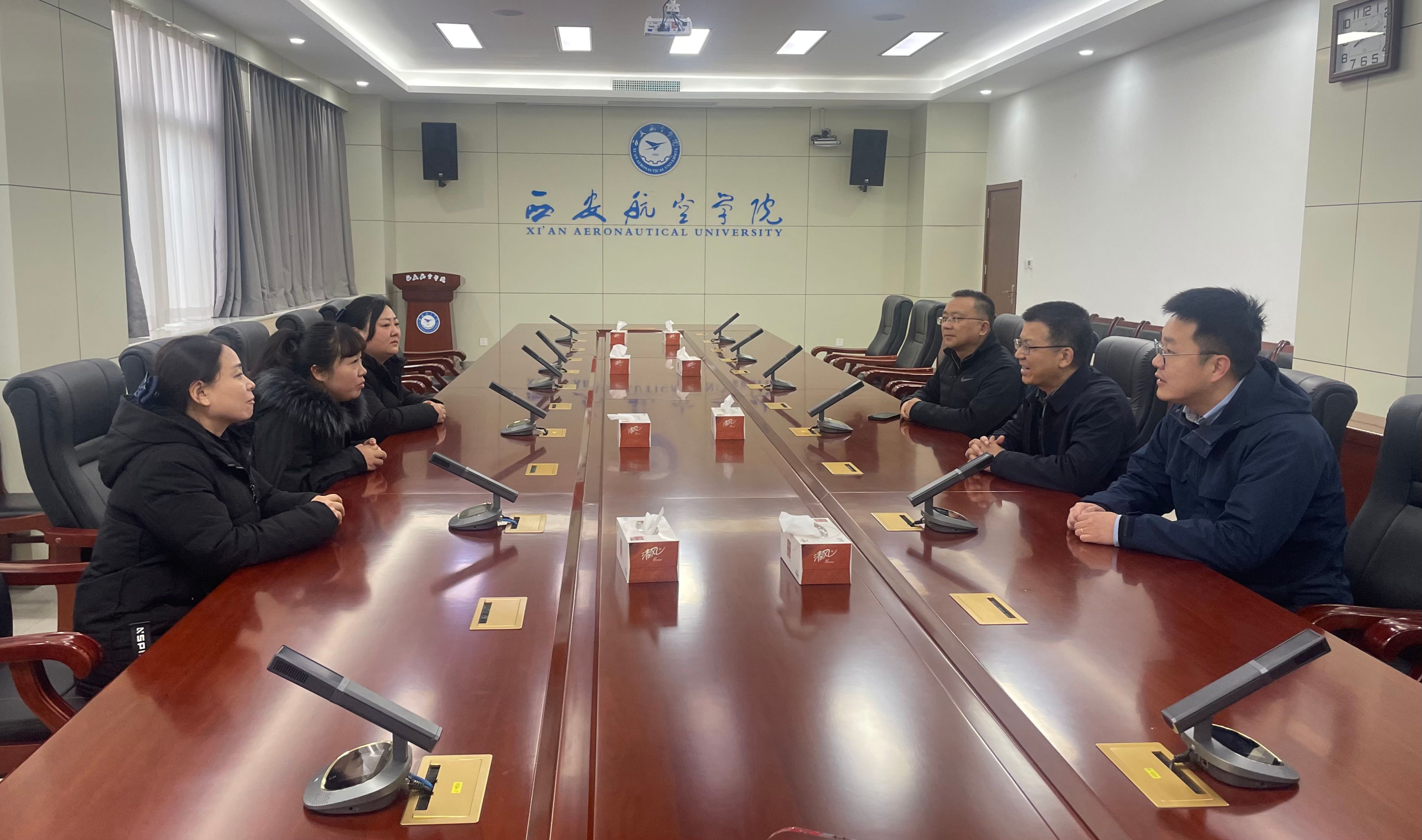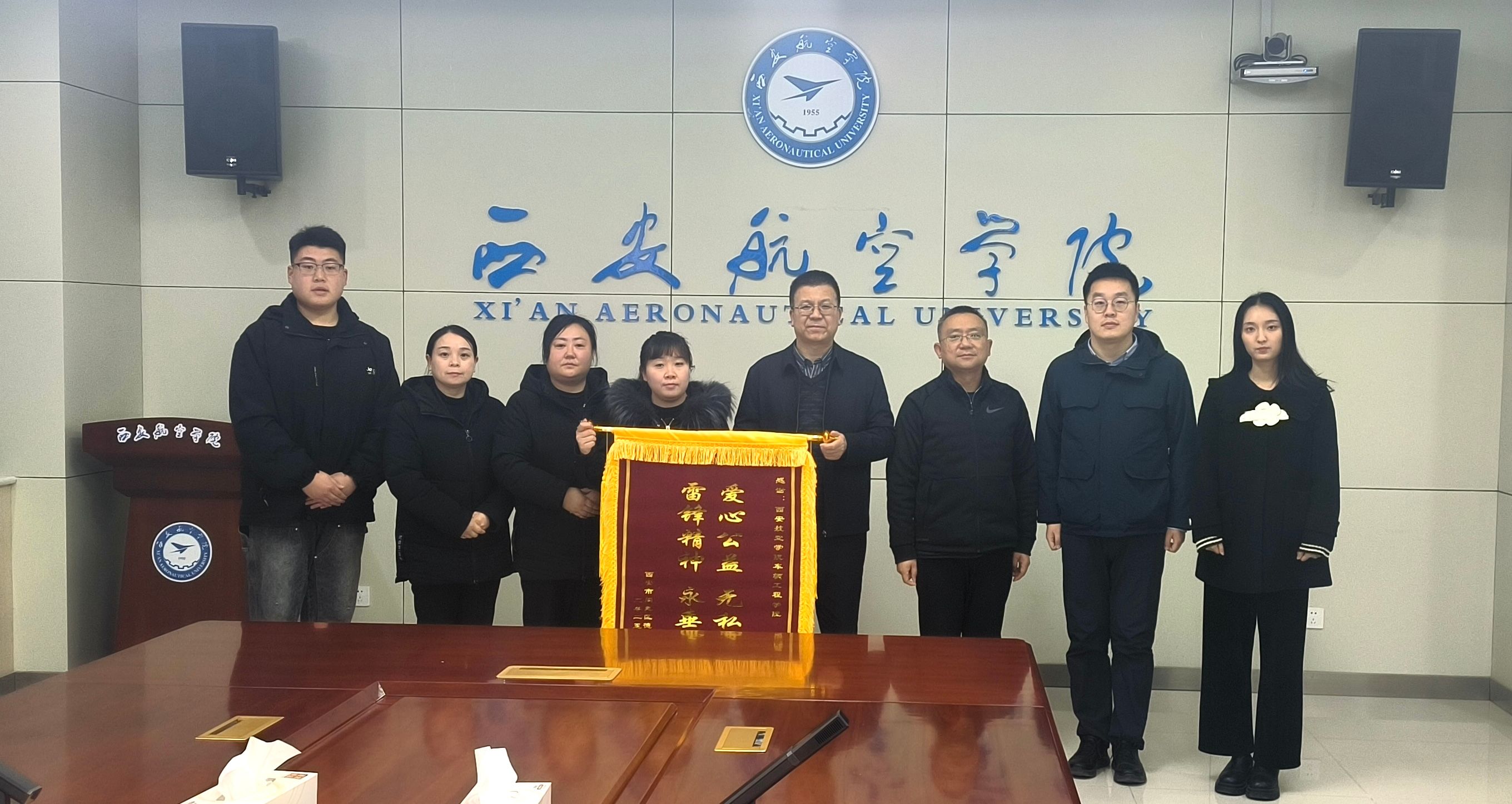 2月27日上午,西安市阎良区德瑞敬老院院长胡环环一行赶赴我校,将一面“爱心公益、无私奉献;雷锋精神、永垂不朽”的锦旗赠予学院,并对车辆工程学院志愿者近年来坚持不懈的敬老志愿服务给予赞赏和感谢。15vip太阳集团副校长宁永录、车辆工程学院党总支书记周小勇、车辆工程学院党总支副书记刘雨辰、车辆工程学院团总支书记任静及学生志愿者代表参加赠旗仪式并开展座谈交流。