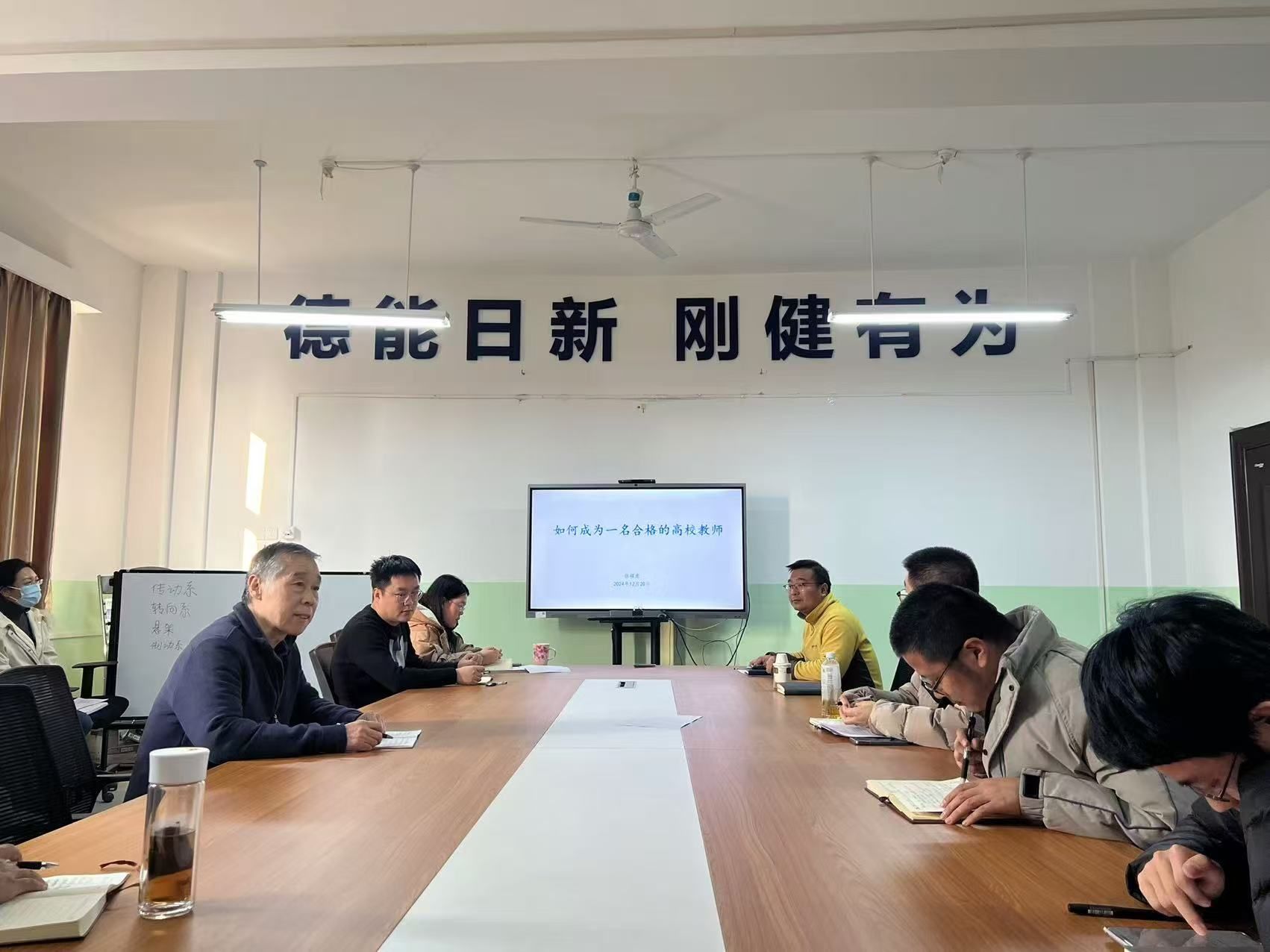 张耀虎围绕“如何成为一名合格的高校教师”这一主题,提出了六点核心要素。第一,他强调,责任心是教师的灵魂基石,每位教师都应时刻牢记对学生成长、对教育事业的重大责任,以高度的责任感投入到日常教学与人才培养工作中。第二,在教学与专业建设方面,张耀虎指出,各位教师应积极响应学校“十四五”规划要求,积极申报各类教学和科研项目,参加入企业实践锻炼,时刻关注行业发展动态,保持终身学习态度,努力提升自身专业技能。同时,带领学生参与各级学科竞赛,锻炼学生实践能力与创新思维。第三,张耀虎着重提到,课堂教学是教师的立身之本。教师应认真备课、授课及课后辅导,深入研究教学方法,精心设计教学环节,不断更新教学内容与方法,提升课堂教学质量,真正做到以学生为中心。第四,教师在教学过程中不仅要传授知识,更要敢于管理学生,以确保教学秩序和效果,培养学生的责任感和自律性。第五,遵守学校规章制度是教师职业操守的基本要求。每位教师都应自觉遵守学校各项规章制度,维护学院正常教学秩序与管理规范,以身作则,为学生树立良好榜样。第六,对于日常工作中可能出现的矛盾与问题,张耀虎强调教师应具备正确处理矛盾的能力与智慧。倡导以沟通、理解、包容的态度面对师生间、同事间的分歧,积极营造和谐稳定的校园环境与工作氛围。最后,张耀虎指出“教育是一门艺术”,对艺术的追求应该是永无止境的,每位教师都应像艺术家一样,以创造性和热情去启迪心智、塑造灵魂。