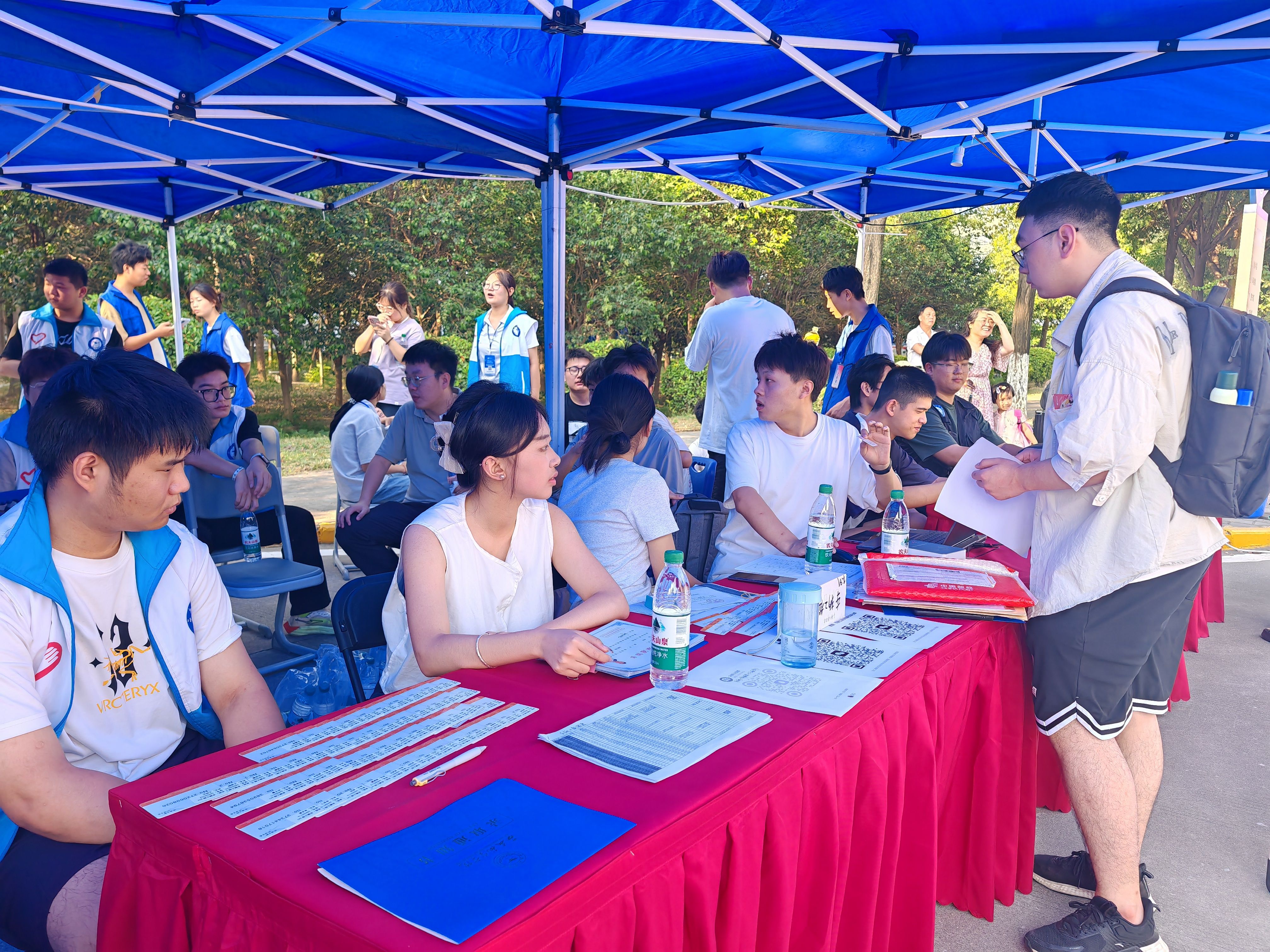 早上七点,学院迎新志愿者们不畏炎热,分工明确,热情细致规范有序的带领新生到达报到处,有条不紊地办理报到等手续。纵使汗水浸湿衣衫,迎新志愿者们依然热心的为每一位同学提供“一站式”服务,将车辆工程学院的友好与热情带去新生心中。迎新期间,车辆工程学院党委书记周小勇、车辆学院院长赵炜华莅临现场,勉励新同学们能够在未来的学习生活中不断追求卓越。学院副书记刘雨辰与新生辅导员高宏鑫在现场有条不紊地指导和推进迎新工作,鼓励新生们快速适应大学生活。