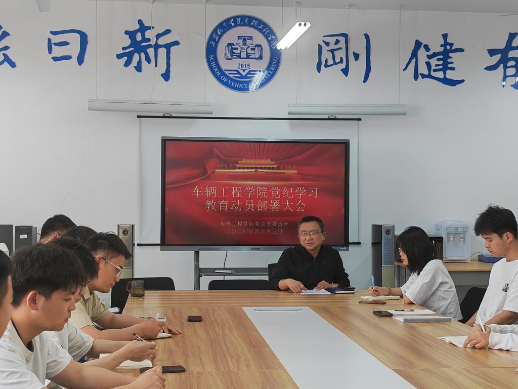 4月15日,车辆工程学院在4211会议室召开党纪学习教育动员部署大会,深入学习贯彻党中央关于在全党开展党纪学习教育的有关要求,部署学院党纪学习教育工作。会议由党总支书记周小勇主持。