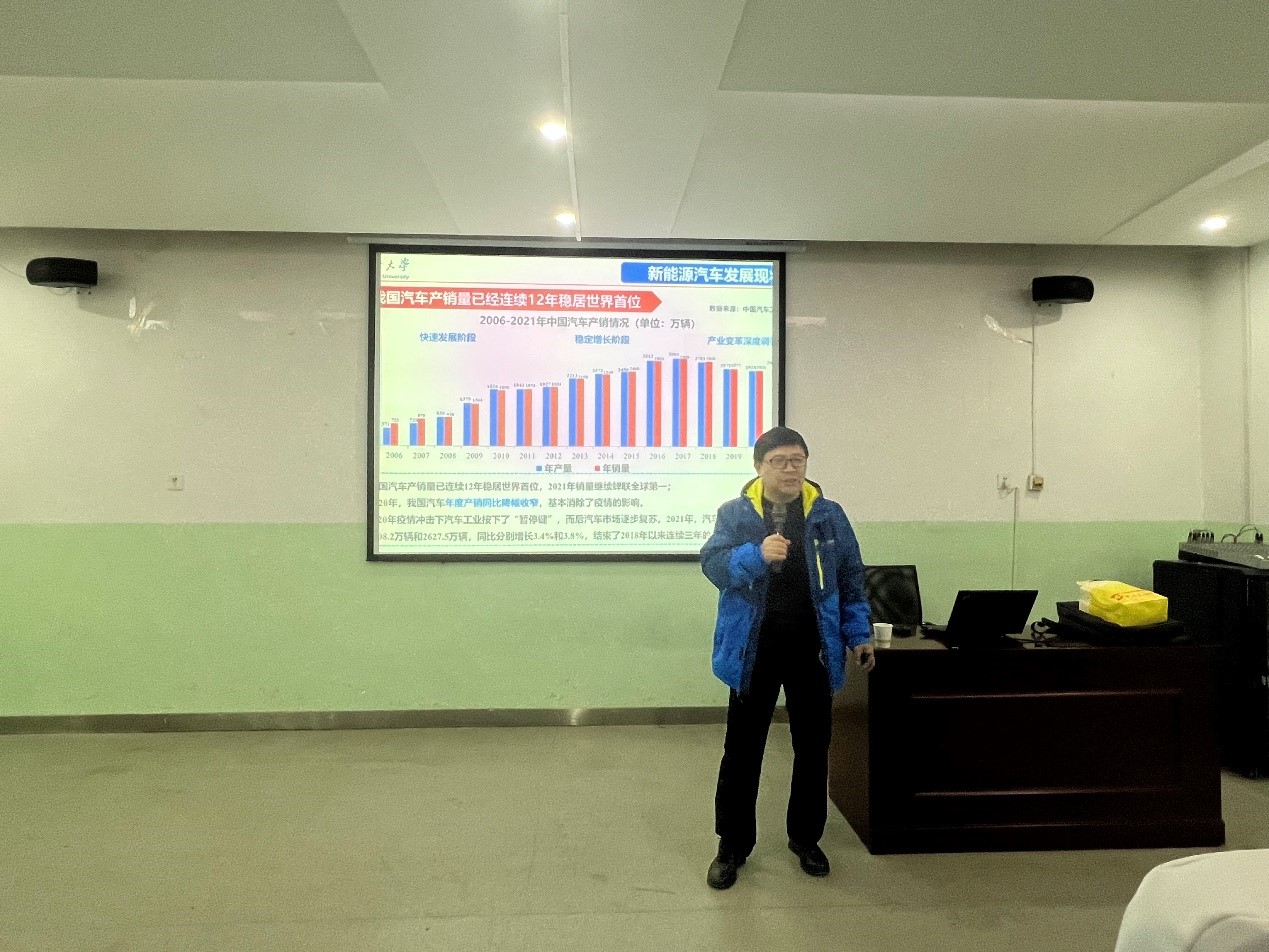 12月27日下午,我校邀请特聘教授、西安汽车职业技术大学副校长余强教授做题为《低碳经济下我国新能源汽车技术发展》的学术报告,报告由车辆工程学院党总支书记、副院长周小勇主持,我校多名教师参加了本次活动。
