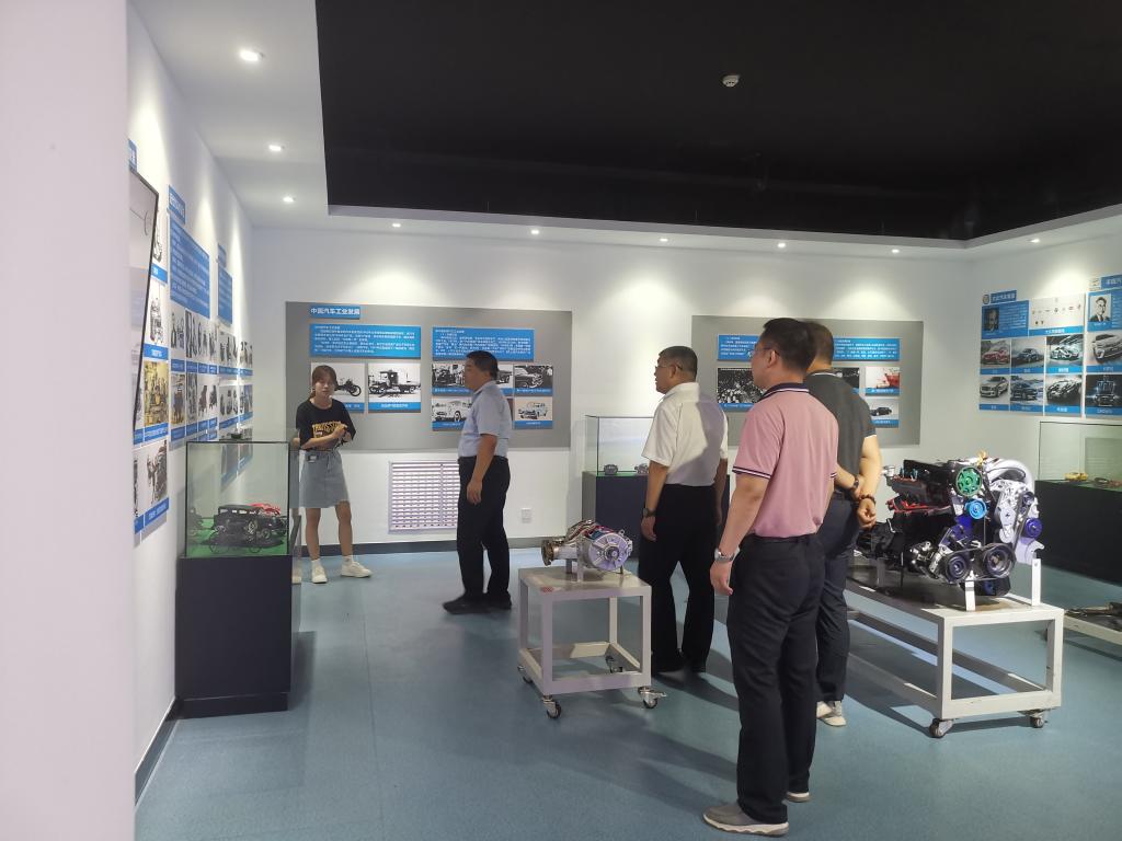 随后,刘振涛、祁玉龙参观了汽车文化馆,文化馆的解说由学院大一学生担任,她向学校领导分别介绍了校企合作展厅、整车展厅、发动机展厅、未来汽车展厅等,刘振涛书记对文化馆的建设表示肯定,并希望继续优化人才培养模式、发挥好文化馆的作用;祁玉龙校长询问了大一学生讲解员对汽车文化、结构、发展掌握的情况,希望学院继续加强对学生专业知识能力的提高。最后,刘振涛书记、祁玉龙校长参观了汽车结构实验室、理实一体化实验室、燃润料实验室和办公室。