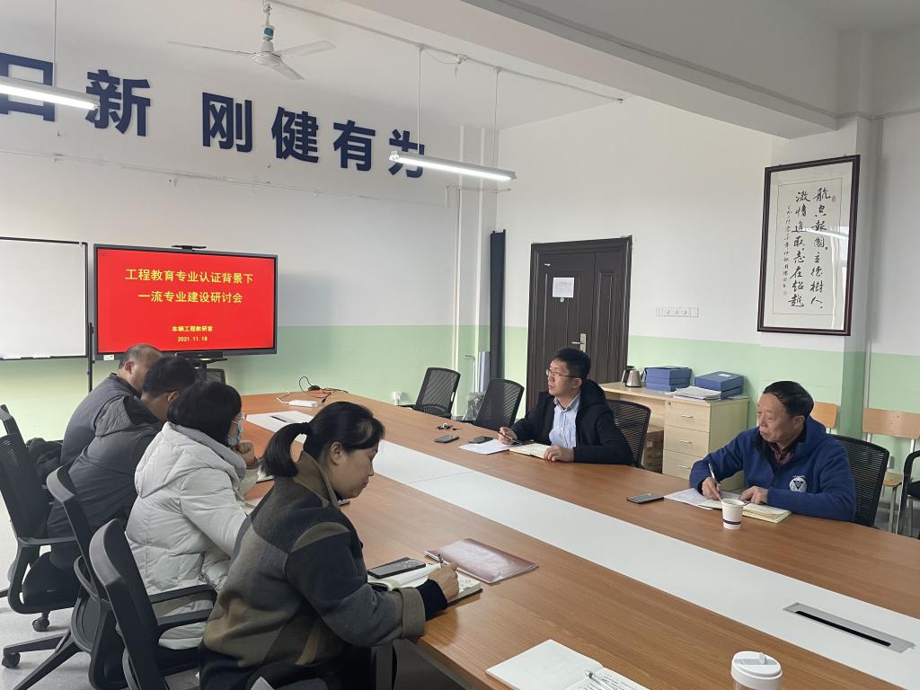 为明确工程教育专业认证背景专业发展思路与方向,2021年11月18日车辆工程学院车辆工程教研室在北343召开专业认证背景下一流专业建设研讨会,车辆工程教研室全体教师参加了研讨会,学校督导办刘振庭教授列席会议。