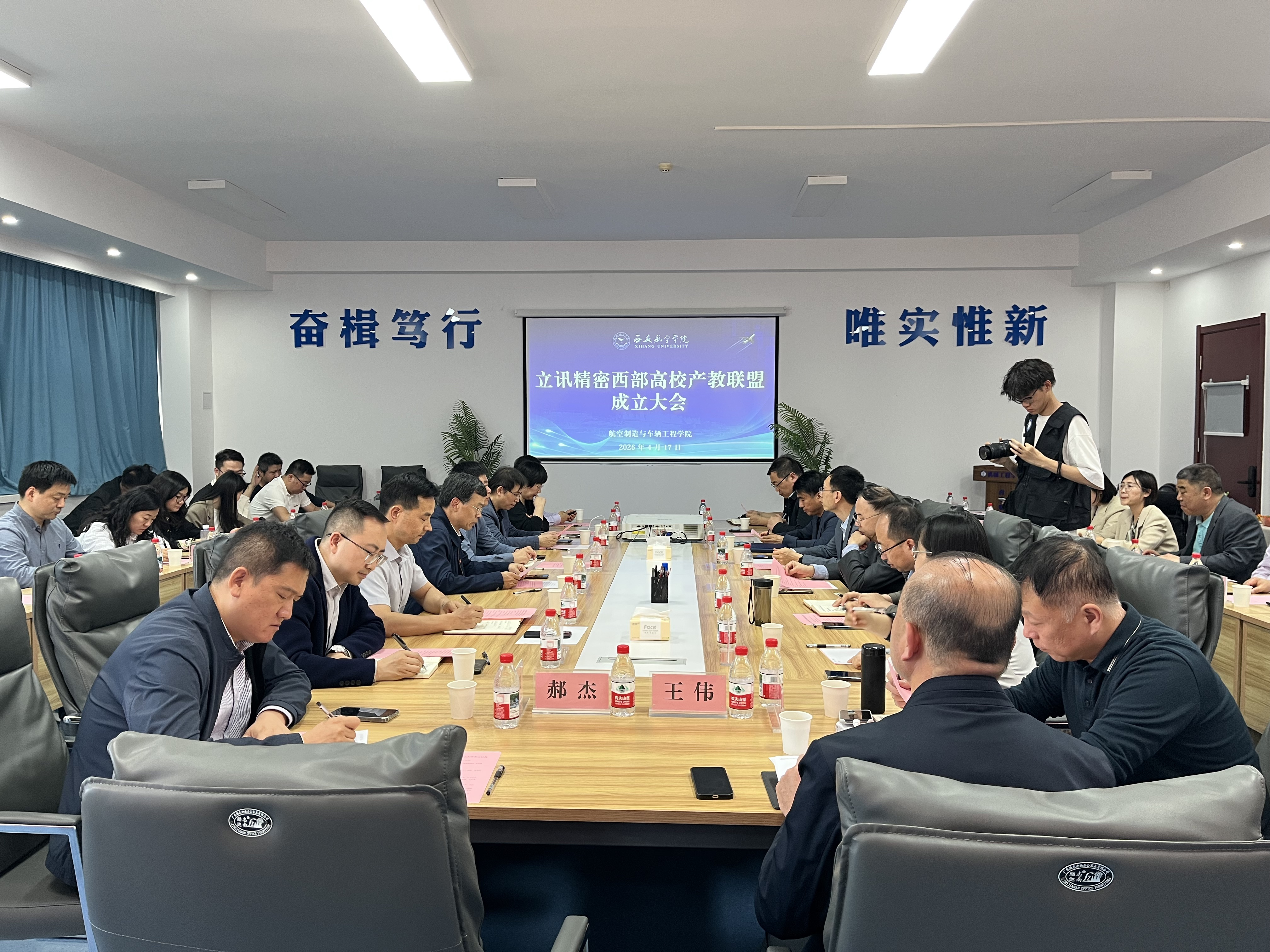 为深化产教融合、推动校企协同育人,4月17日下午,立讯精密西部高校产教联盟成立大会在15vip太阳集团阎良校区隆重举行。立讯集团、西安工业大学、陕西理工大学、陇东学院、宝鸡文理学院、西安文理学院、兰州工业学院、兰州信息工程学院、西京学院、西安交通大学城市学院等10所西部高校代表30余人齐聚一堂,共探产教融合创新发展之路。校领导宋文学出席会议,大会由航空制造与车辆工程学院院长王永锋主持。