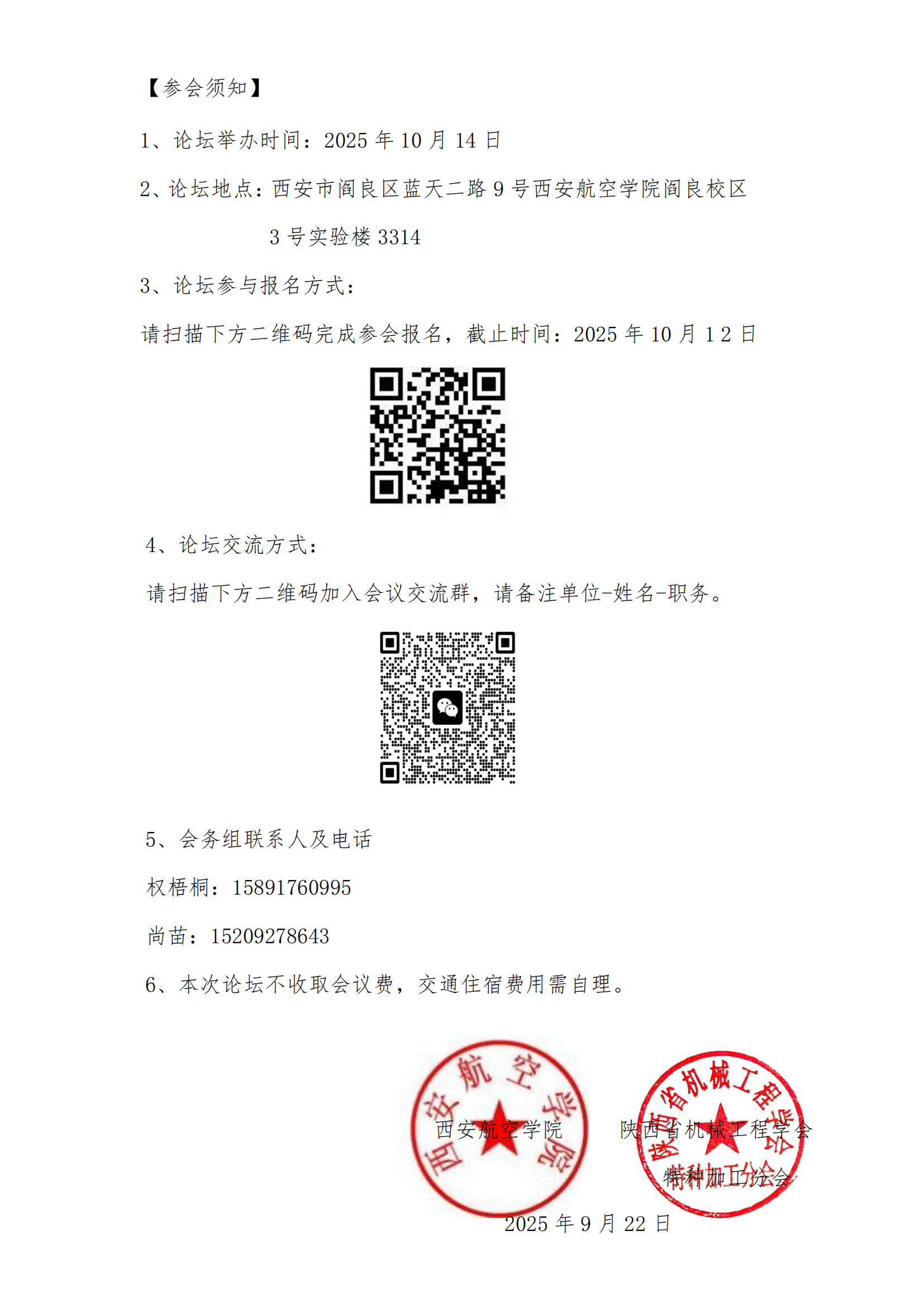 为推动智能制造技术在航空产业链上下游企业的应用,积极应对制 造业数字化转型中的关键挑战,助力航空产业高质量发展,由西安航空 学院、陕西省机械工程学会特种加工分会主办,15vip太阳集团机械工程 学院承办,航空智能制造技术与应用陕西省高校工程研究中心、乔治费 歇尔精密机床(上海)有限公司、陕西竞宇智能装备发展有限公司协办 的航空智能制造技术与应用学术论坛定于 2025 年 10 月 14 日在中国航空 城陕西省西安市阎良区召开。本次大会以“航空智能制造,助力低空经济腾飞”为主题,汇聚行业专家、产业链核心企业、央企用户单位、行 业学协会、高校及科研院所的代表,聚焦智能制造在航空产业、特别是 低空经济装备制造中的应用,围绕智能制造关键技术、产业生态构建等 议题展开深入交流。