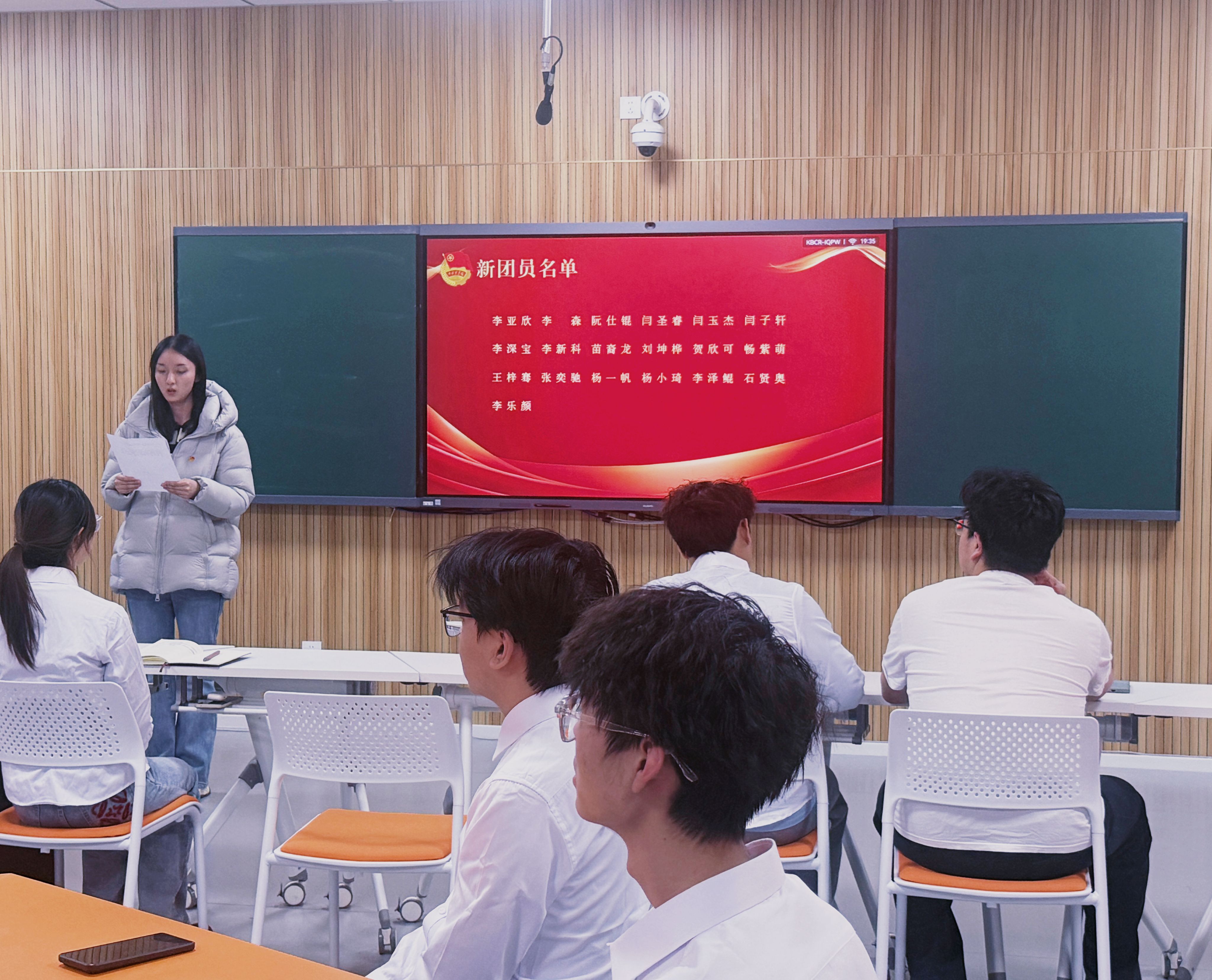 首先,全体人员奏唱中华人民共和国国歌。随后,任静宣读了《关于批准王梓骞等19名同学加入中国共产主义青年团的决定》,并向新团员表示祝贺。