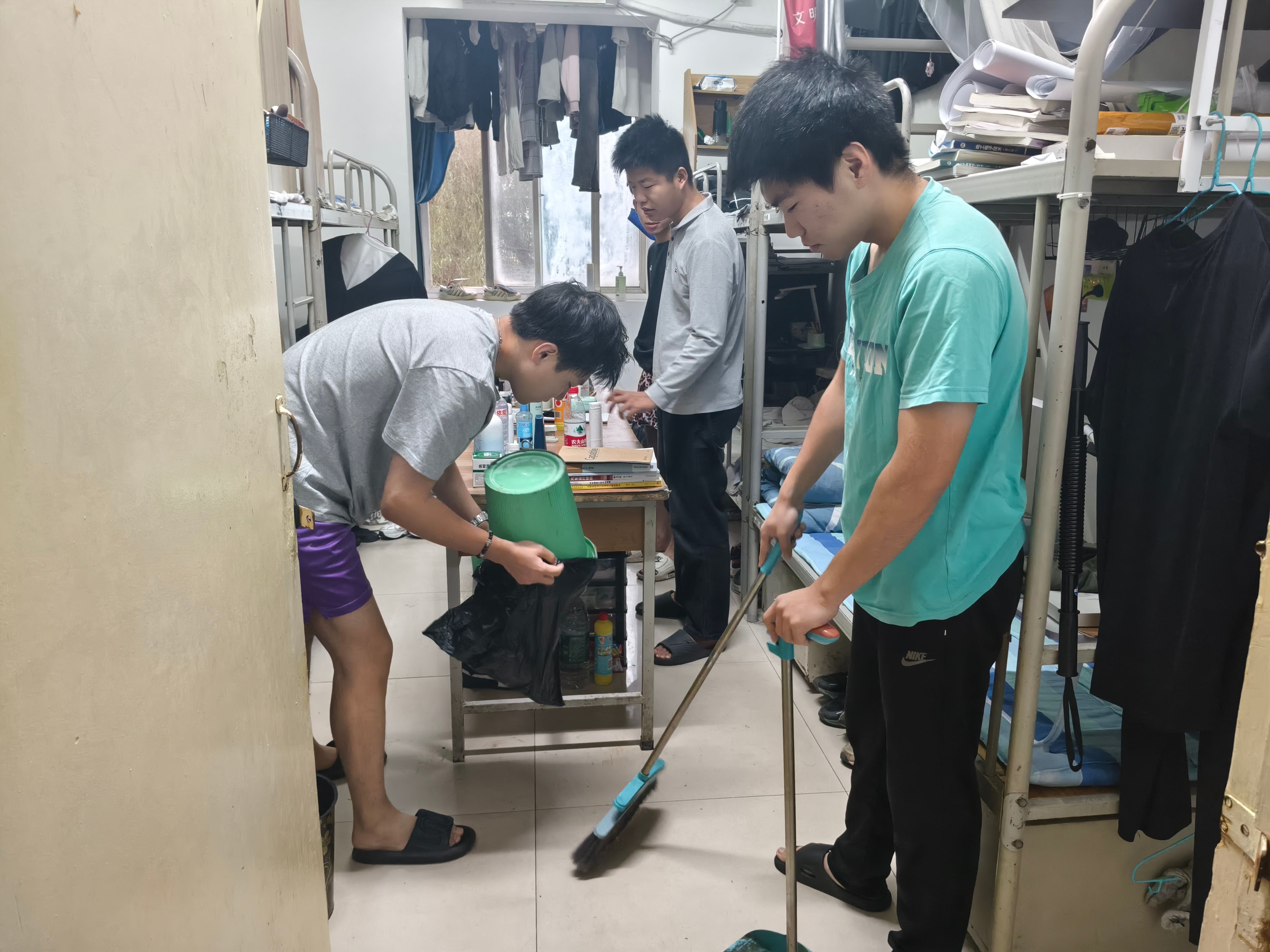 学院将学生分为若干小组,明确各小组负责区域与任务:教学区小组重点对四号实验楼北侧,学院实训中心、实验室及周边公共区域进行清扫,广大学生擦拭门窗玻璃、课桌椅、讲台及教学设备,清理地面杂物与卫生死角;对学生宿舍、宿舍楼道、责任教室带等区域进行打扫。大家分工明确、协作有序,用双手为校园环境“焕新颜”,切实体会“劳动最光荣”的深刻内涵。