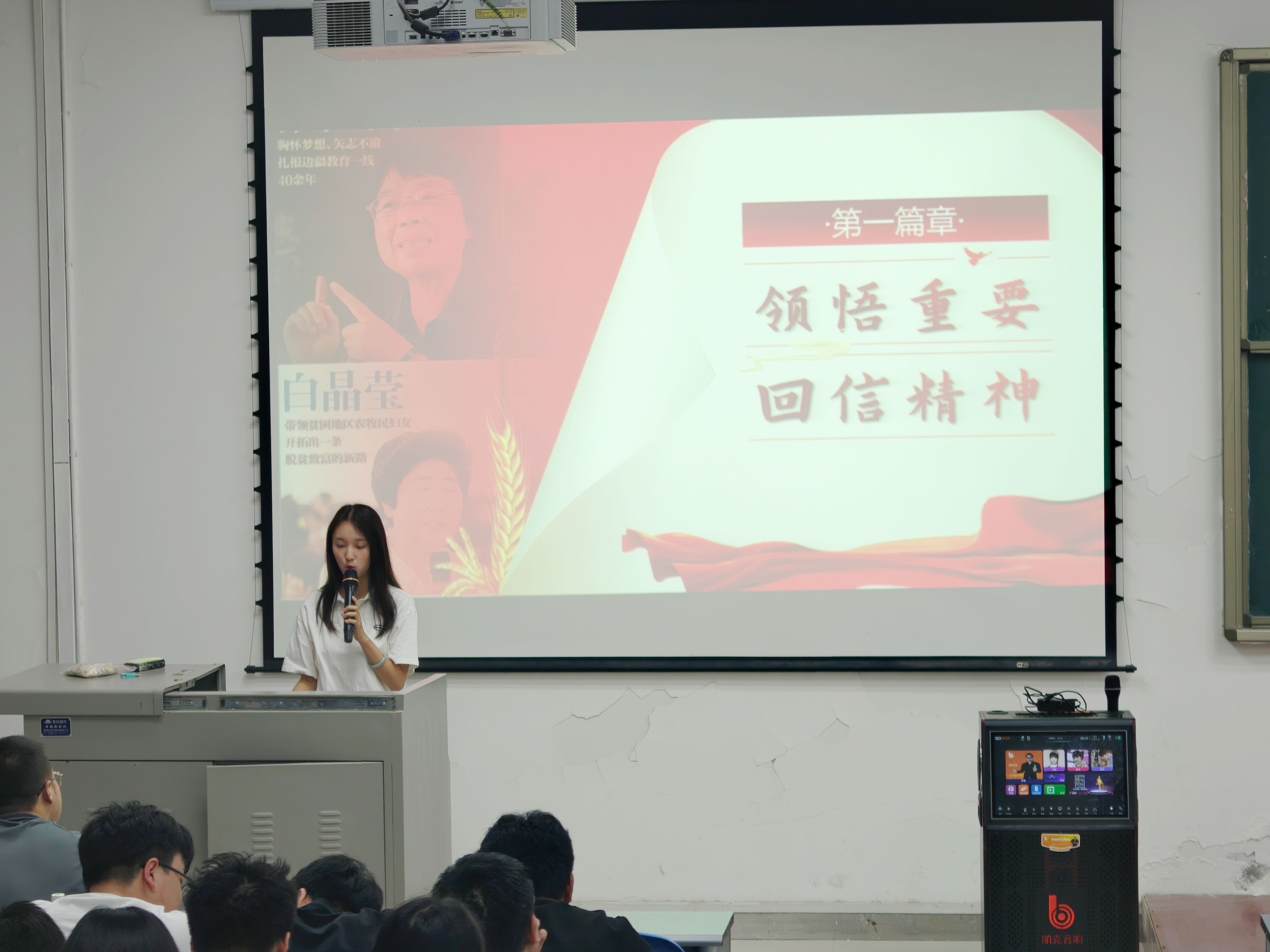 为深入学习领会习近平总书记重要回信精神的深刻内涵与时代价值,引导青年团员坚定理想信念、明确奋斗方向。6月26日,车辆工程学院团总支在阶梯三教室组织开展了“学习回信精神,勇担时代使命”主题团课。本次团课由团总支书记任静主讲,学院全体共青团员参加。