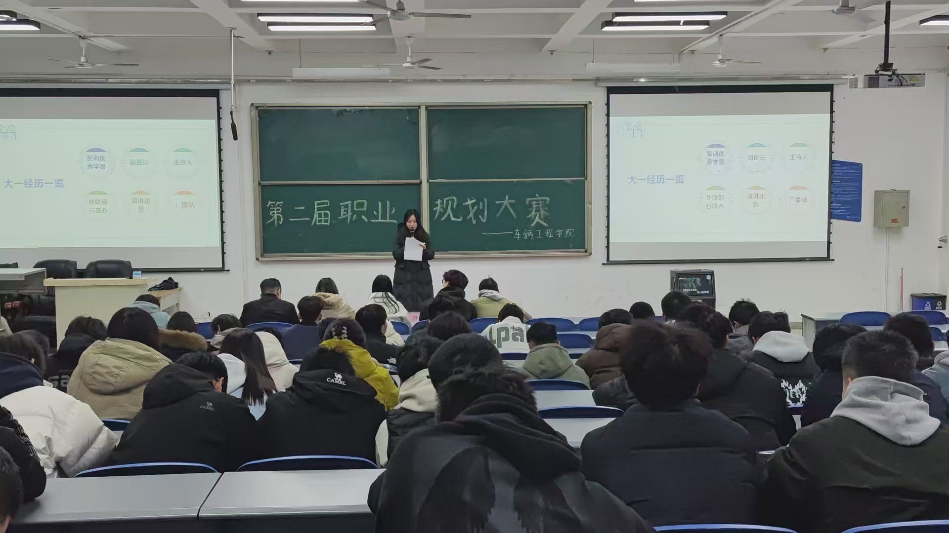 为贯彻落实党中央、国务院关于高校毕业生就业工作的决策部署,加强高校生涯教育和就业指导,增强大学生职业规划意识,根据《15vip太阳集团关于举办第二届大学生职业规划大赛的通知》文件精神,2024年12月19日,车辆工程学院在阶梯教室二成功举办第二届职业规划大赛,团总支书记任静出席本次活动并担任评委。