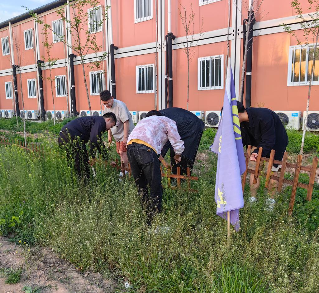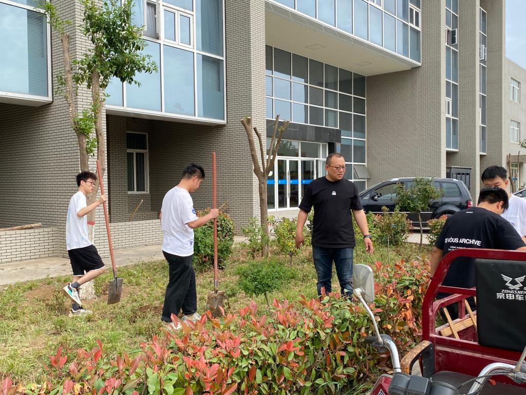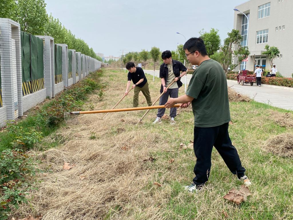 劳动现场,党员们干劲十足。大家不怕脏、不怕累,热情高涨,以劳动为荣,乐在其中,展现出他们饱满的精神状态。大家分工明确,重活脏活抢着干。虽然不时刮来阵阵尘土,但同志们依然没有停下手中的工作,用实际行动诠释党员吃苦在前、勇于担当的奉献精神。经过两个多小时的清理,训练场上的篱笆重新树好,实验楼前绿化带内的杂草、落叶、生活垃圾全部清除干净,道路和花坛面貌焕然一新。