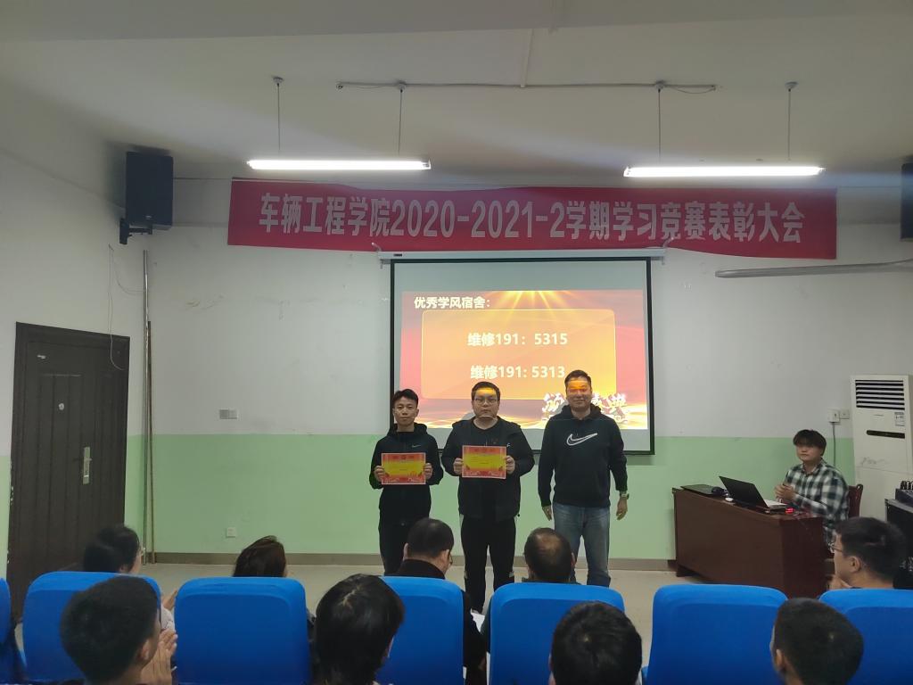 首先,赵炜华宣读表彰文件并鼓励全院同学将宿舍和班级打造为有内涵、有特质的集体。、赵炜华、周华及张赛分别为优秀互助对子、优秀学风宿舍及优秀学风班级颁发了奖状。由国家奖学金获得者车辆工程193班胡宁同学为在场学子带来了题为“改善自身学习方法提升自身学习能力及效率”的学习经验分享。最后,周华向全体同学提出了三点要求,倡议同学们要做有目标、有追求;明大德、守公德、严私德;有底线、有界限的合格大学生。
