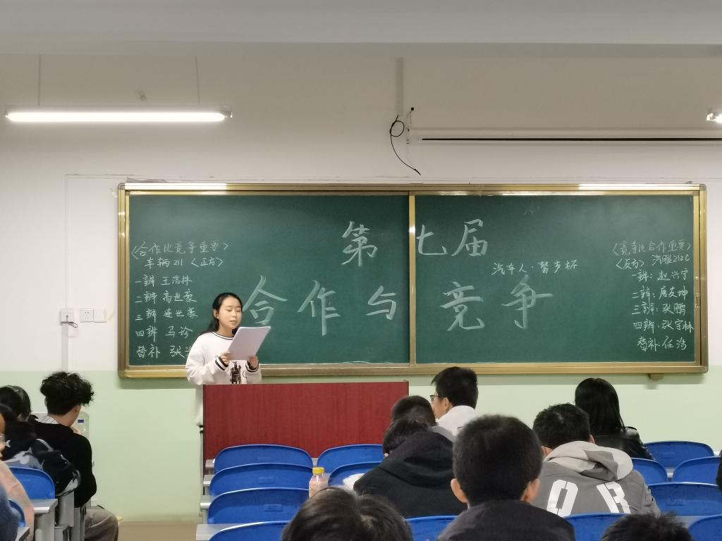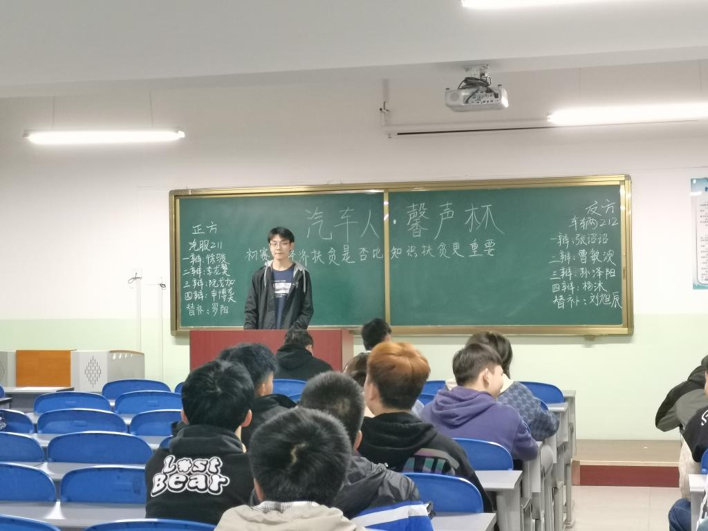古有卧龙诸葛舌战群儒,今有群英荟萃慷慨陈词。10月11日晚车辆工程学院组织的第七届汽车人·馨声杯辩论赛初赛在北教学楼233、333、433教室举行。