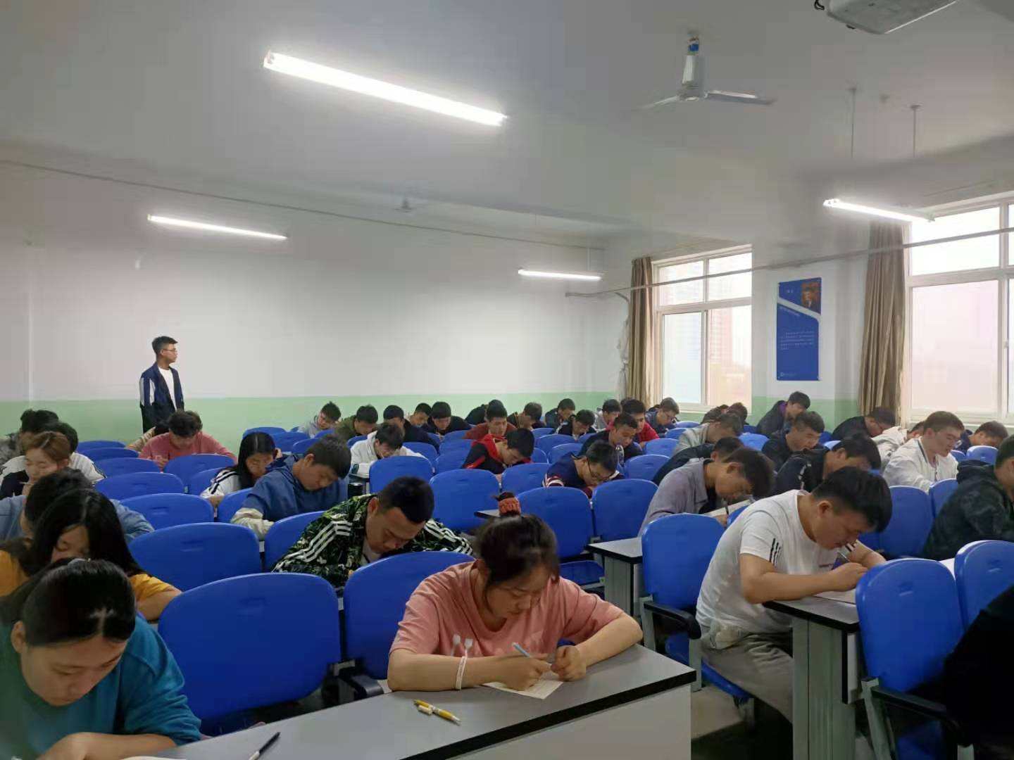 为了迎接即将到来的全国英语四六级考试,锻炼考试心态,4月22日车辆工程学院联合新东方在教学北楼333、433、447教室进行新东方四级模拟考试活动,在本次活动由学院学生会组织并负责监考。