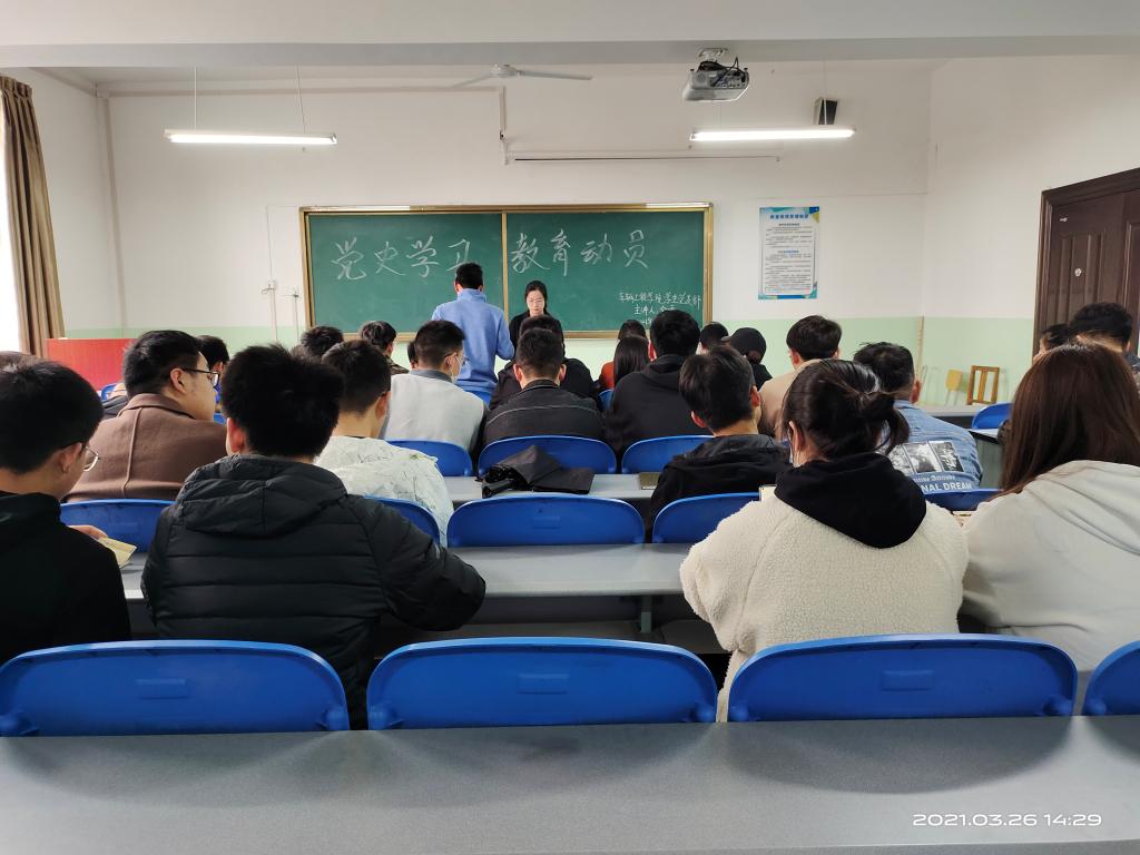 为了深入贯彻落实《中共中央关于在全党开展党史学习教育的通知》及省、市、校党史教育动员大会精神,3月26日下午车辆工程学院学生党支部在北楼333,开展了向建党一百周年献礼之党史学习教育动员大会暨书记讲党课活动,由学生第一党支部书记金雪主持,全体学生党员参加。