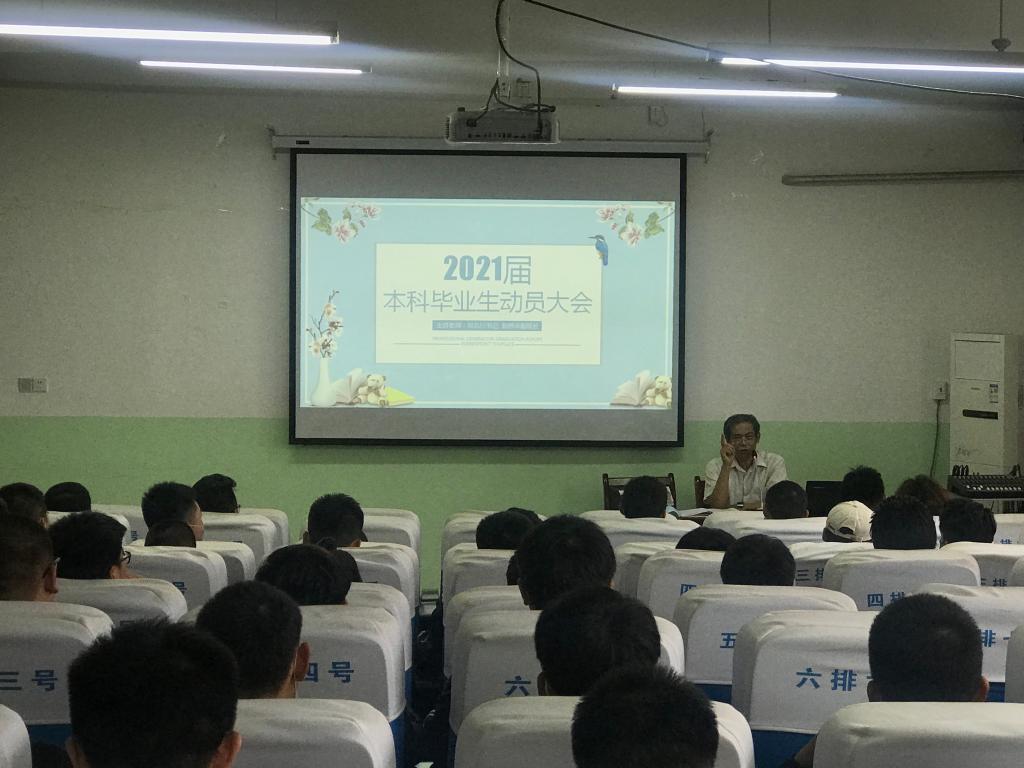 会上,邓北川要求广大同学调整个人的心态、状态及态度,以更加饱满的热情投入到即将到来的就业和毕业设计等工作中来,他强调:广大同学要树立先就业后择业的就业观,利用即将到来的暑假想清楚自己的就业意向、就业地域等问题;做好个人自荐书及就业中面试、笔试的各项准备工作并鼓励大家提升能力走出去开阔个人视野,做好就业准备工作。做到就业与学业两不误、两促进。赵炜华副院长强调了课业的重要性及毕业设计的相关安排与要求。赵坤重点就与毕业生相关的教学环节内容、学籍管理要求、获取毕业证、学位证的条件等作了详细说明,并要求同学们正确处理就业与学习的关系。最后,于思月向2021届毕业生通报了2020届毕业生截止目前的就业情况,强调了毕业生纪律,并针对以往在就业中的误区及就业中的错误认识进行教育、指导。