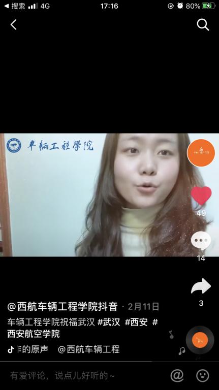 抗击疫情期间,学院不忘丰富广大同学的课余生活,为广大同学传递正能量。自疫情爆发以来,学院在微信公众号、抖音公众号及“我在校园”小程序中分别推送了“武汉,加油”等视频十余个、“毕业前,疫情下,宅家的我,做什么才不浪费时间”等文章二十余篇。鼓励广大同学利用线上资源增强文献阅读,提高个人学术水平,充实度过假期与疫情期。此外,学院依托校心理咨询中心,告知全体学生在疫情防控期间的心理调节方式,通知线上师生疫情心理援助平台的操作和使用办法,帮助广大师生缓解对疫情恐慌、焦虑等应激心理反应,做好心理危机干预工作。