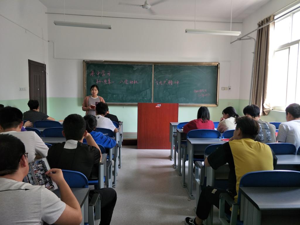学生支部组织委员于思月老师带领大家分别学习了党章及十九大精神并与广大同学交流了入党动机。同学们对个人入党动机都做了深入阐释,分享了自己的入党故事。通过此次讨论学习,同学们加深了对中国共产党的了解,为接下来的学习奠定了基础。