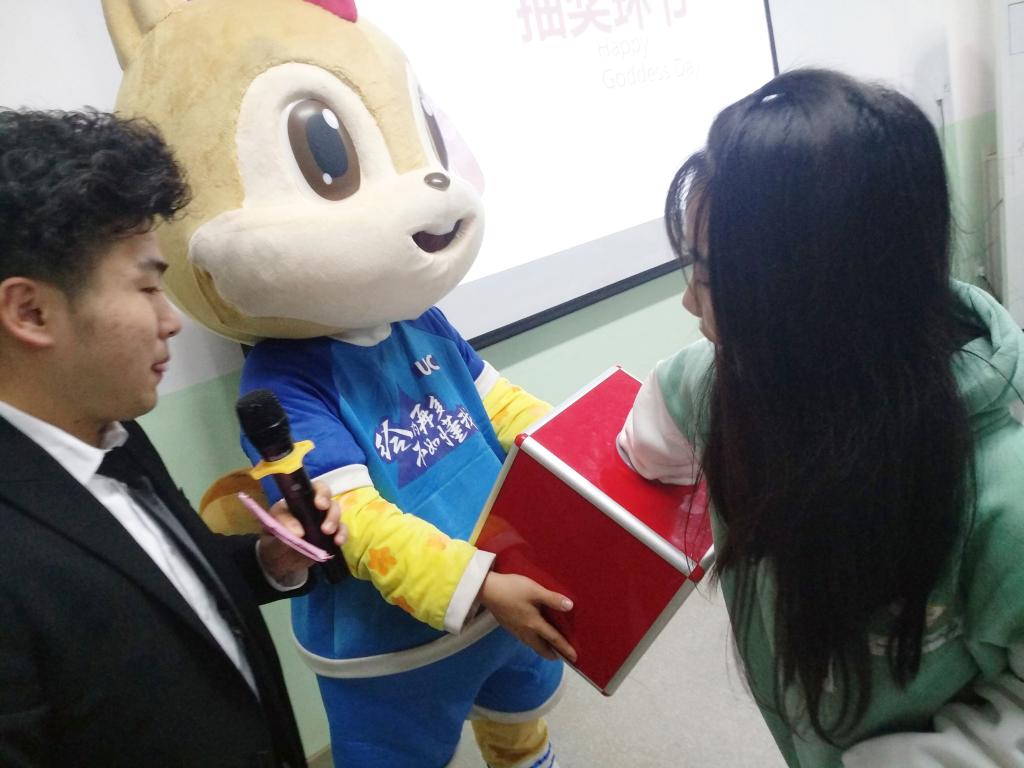 活动中,女生参与答题即可拥有一次抽奖机会,获得由学院为广大女生准备的节日礼物,礼物本身充满了学院对广大同学的关爱与祝福。随后,女生们把写满了祝福的卡片挂在了学院祝福女生们的条幅上,将祝福传递给每一位同学。最后,由学院男生将写好的祝福大声念出来,表达对女生的赞美。使每一位女生在女生节这个属于自己的节日里拥有一个美好的回忆。
