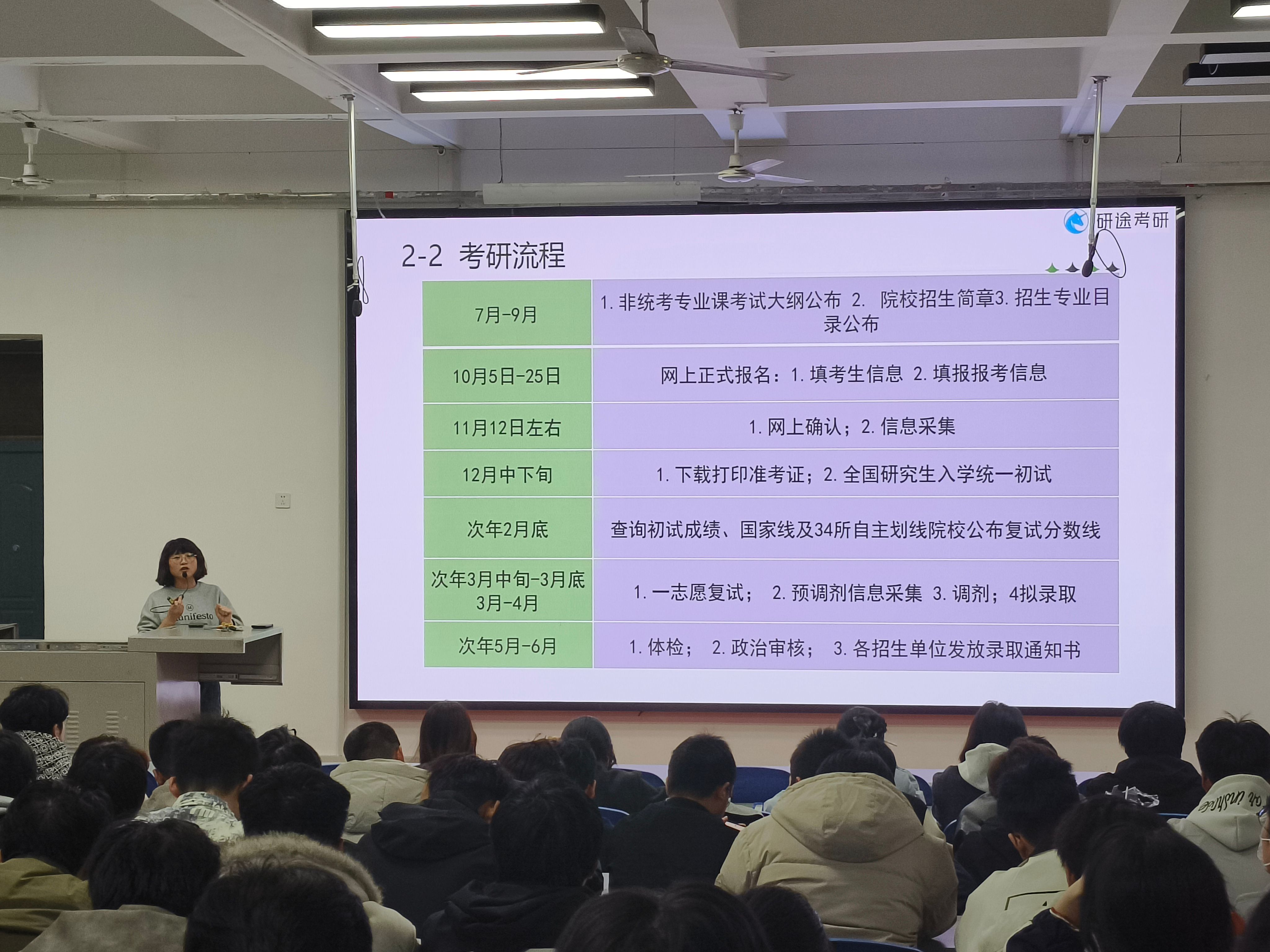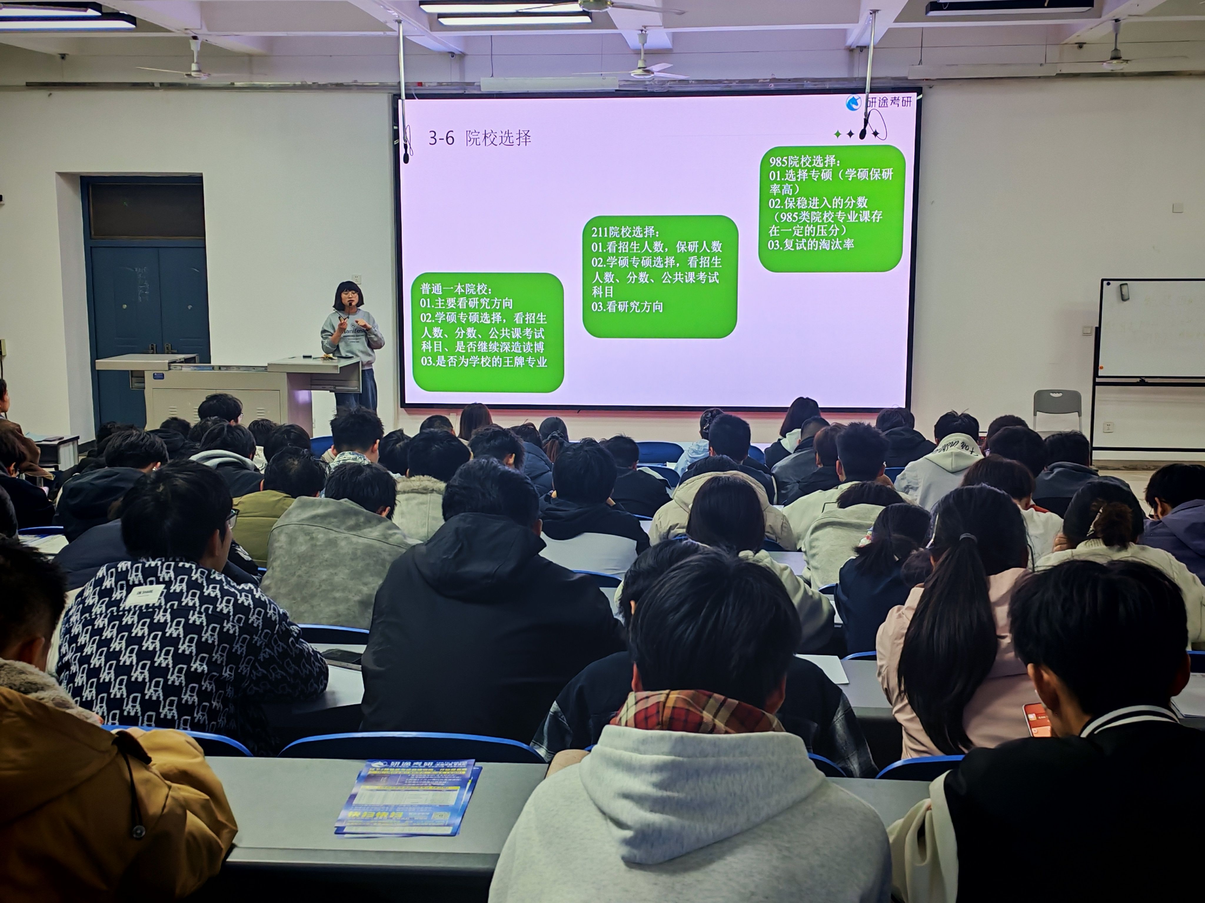 为了助力2024级学子明晰考研方向、掌握科学备考方法,我院联合研途考研机构于2026年3月26日在阶梯二与阶梯三开展考研指导讲座。